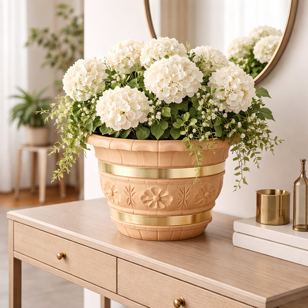 Vaso Cachepô Decorado Colibri - Cerejeira Ideal para arranjos florais e acondicionamento de vasos com plantas, o Cachepô Decorado Colibri é produzido com material plástico resistente, garantindo durabilidade e estilo. Disponível em cores como Cerejeira, Marfim, Imbuia, Tabaco e Prata, o produto oferece versatilidade para complementar a decoração.